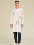 スタイルも縦長にすっきりと着こなせるロング丈、レザーベルト仕様。