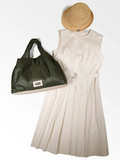 胸元はタック留めでウエストから広がるフレアなデザイン