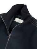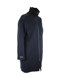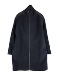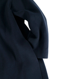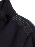 ハイネックとショルダーにはニット地を使い柔らかな雰囲気。