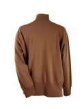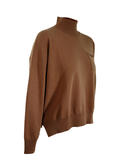 プレーンステッチでシームレスに編まれているため、滑らかで均一な質感が得られ、タートルネックが特徴です。