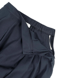 プリーツ、バックウエストにはゴム入りで楽な履き心地、さらにサイドポケットがある実用的なスタイル。