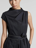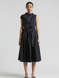 軽量ストレッチコットンサテンで作られたこのドレスは、モダンでフェミニンなスタイルが特徴です。