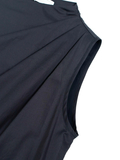キャップスリーブのアシンメトリーなラインがモダンな印象を与え、片方の肩にフリルをあしらったクレーターネックがエレガンスを際立たせています。