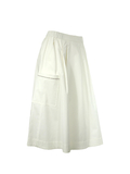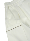 ウエストゴムの楽に履けるスタイルに、パッチポケットのボールチェーン飾りがポイント。