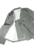 ウールポリエステルストレッチツイルの高級サマーウール使用したダブル前ピークドジャケット。