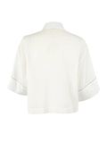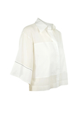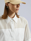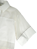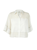 コットンストレッチ素材の身頃部分と、コットンシルクの素材のコンビデザイン。
