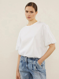 コットンガーゼ2枚仕立てバルーンヘムブラウス