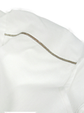 バックネックポイントのボタン仕様、肩にはボールチェーン飾りがきらりと光ります。
