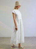 コットンジャージー×ガーゼスカートのコンビワンピース