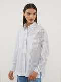 すっきりとしたホワイト×ブルーの軽やかで、大き目パッチポケットがかわいいデザイン。
