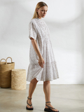 ウエストは少し高い位置での切り替えで、フレアでガーリーな雰囲気も。