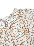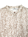 筆記体文字が全体に散りばめられ、おしゃれなラッピングペーパー風の上品なプリント。