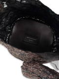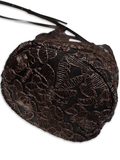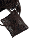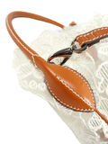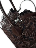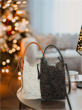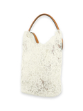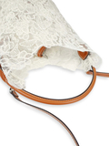 繊細で上質なレースを贅沢に使用し、落ち着いたブラウンとホワイトのカラーが上品な佇まいを引き立てます。丸みのあるバケツ型フォルムに、しなやかなレザーのワンハンドルを組み合わせ、手に取った瞬間から高級感を感じさせる仕上がりに。