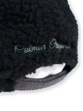 つば部分には上品な光沢と柔らかな質感が魅力のコーデュロイ素材を使用し、頭部はふんわりとしたボア素材で仕上げました。