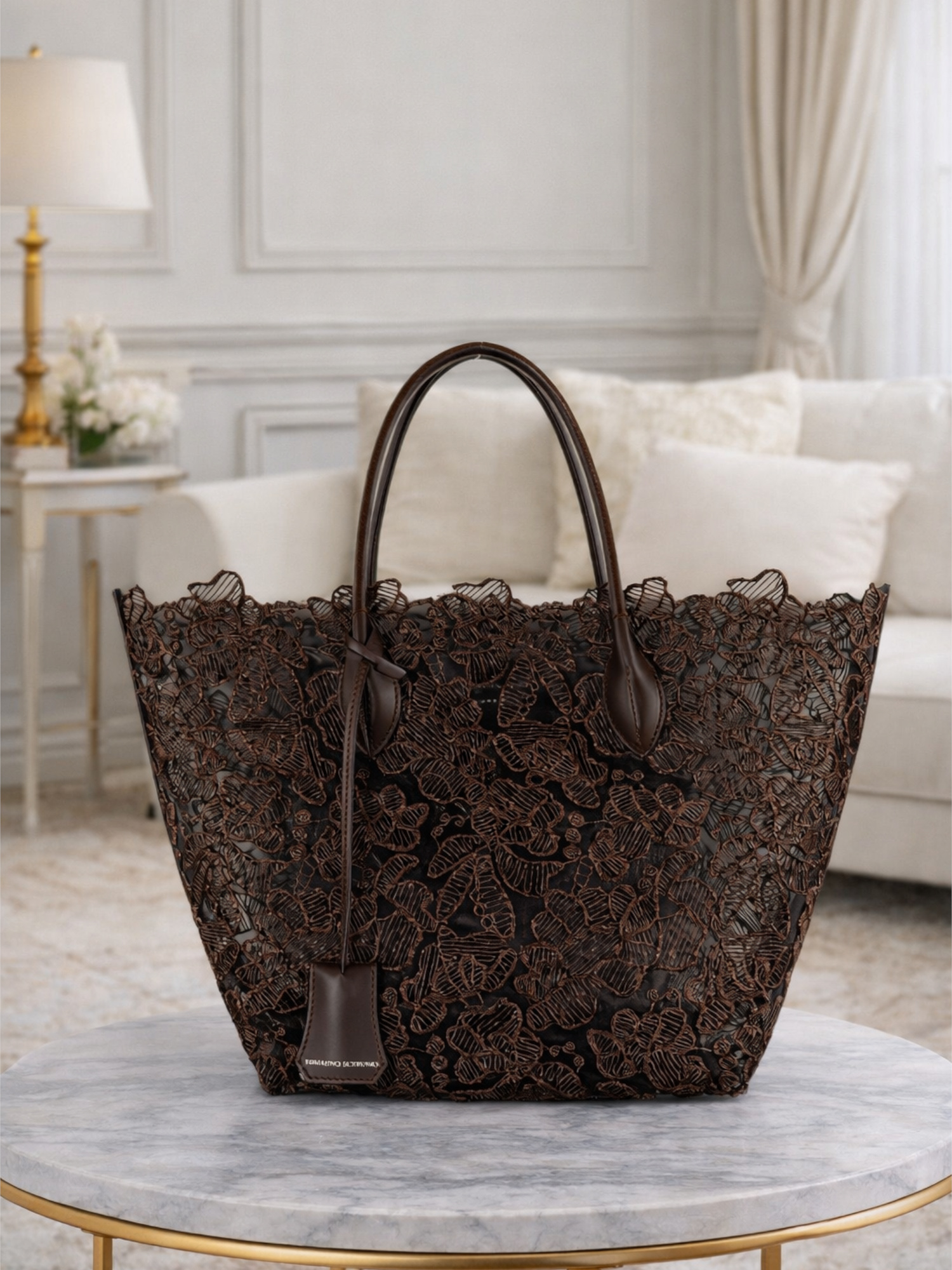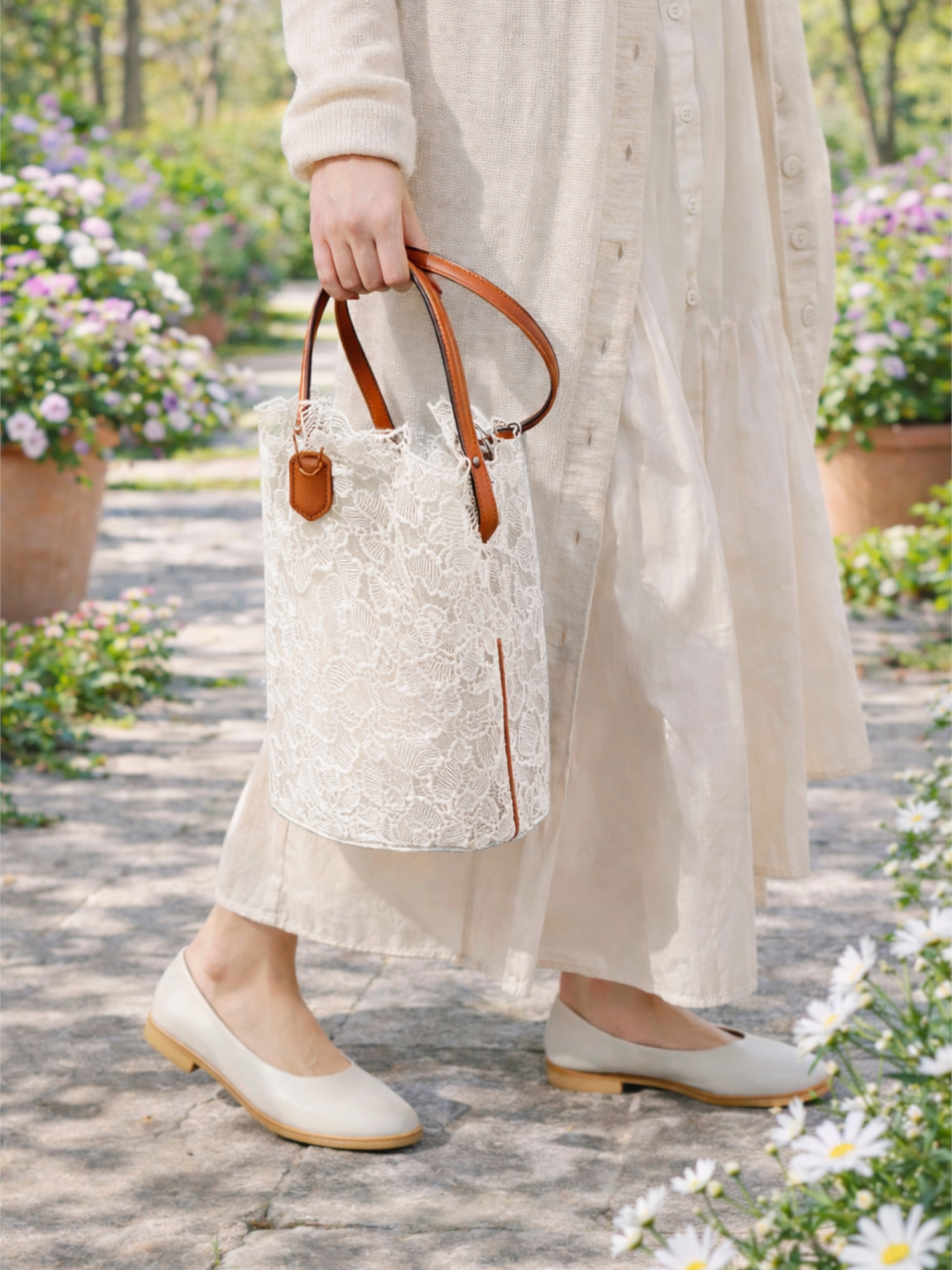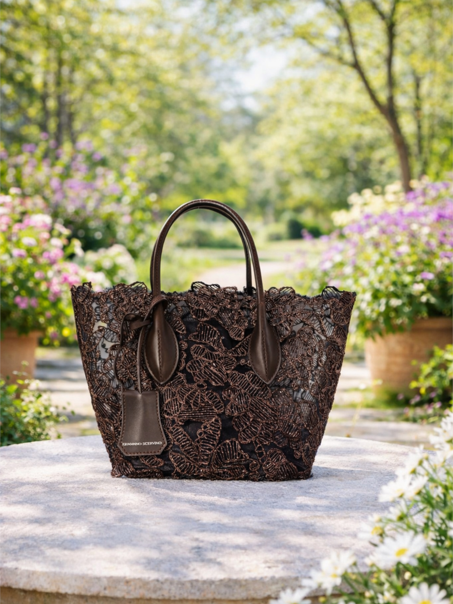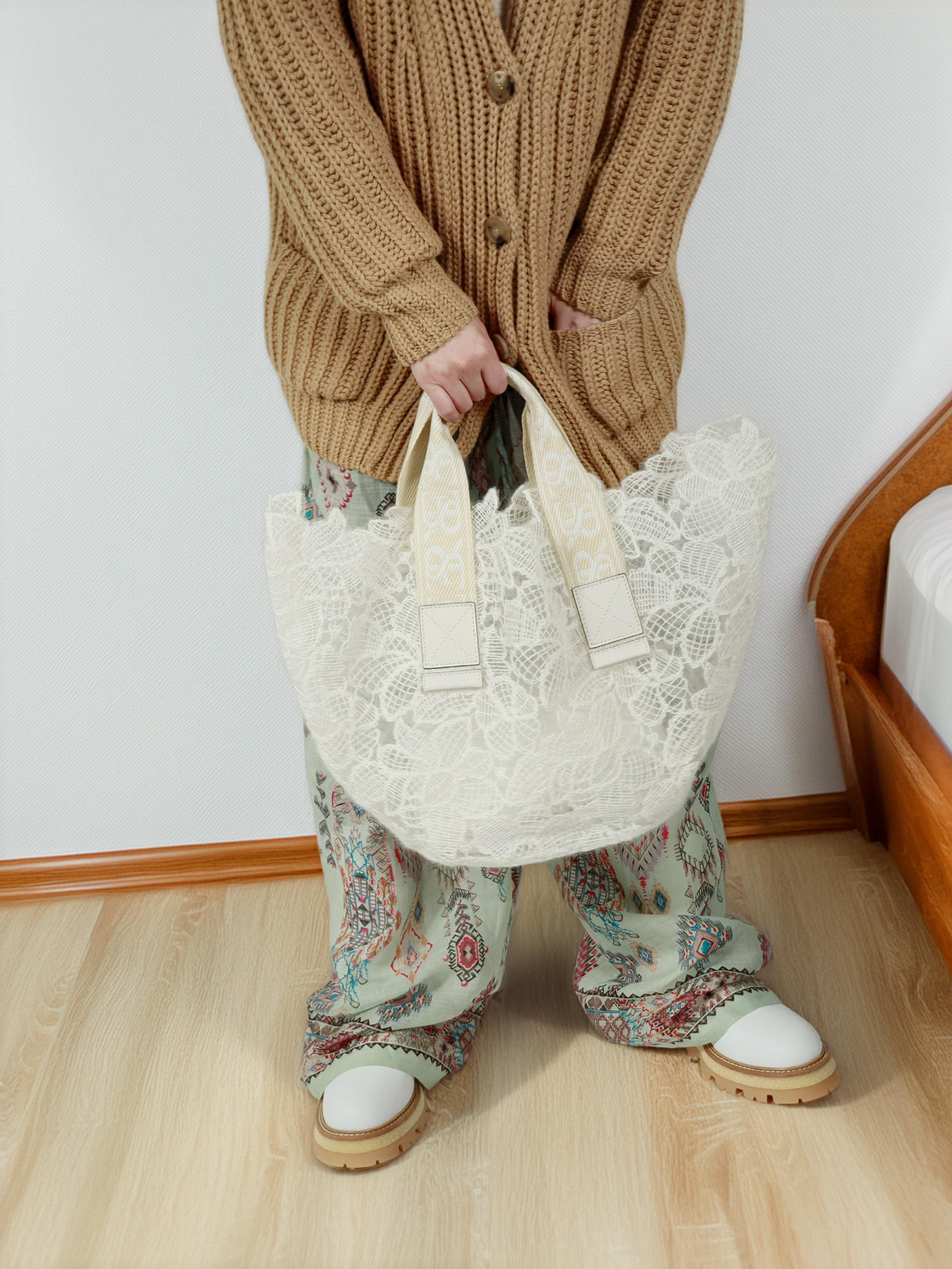 ブランドならではのクラフトマンシップが光るレース素材は、