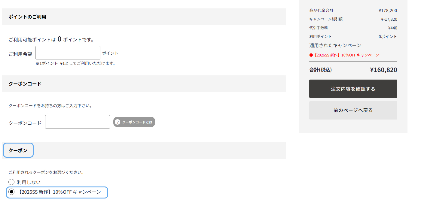 下の方にクーポンを選ぶ箇所がございますのでこちらから選択してご利用ください。